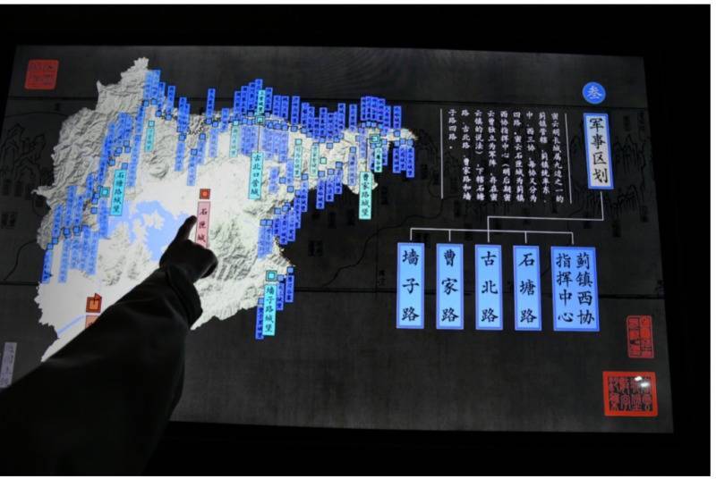 在北京市文物局的支持下,密云区基于对古籍文献的系统梳理,结合AIGC、AR等数字技术,打造了古北口、遥桥峪、关门三座长城城堡数智体验馆。各馆均设有“密云城堡数字沙盘”,观众可通过互动展项探索明代军事防御体系的指挥机制与结构奥秘,自由点击交互按钮,深入了解密云地理形势的战略价值、城堡营建的匠心设计启灯网,以及军事分区的严密逻辑。